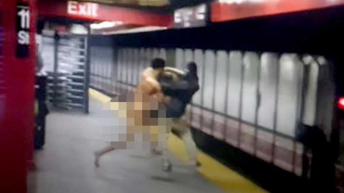 ABD’nın Harlem bölgesinde meydana gelen olayda, çıplak bir saldırgan dans edip metronun gelmesini bekleyen bir yolcuyu önce dövdü, ardından raylara attı.