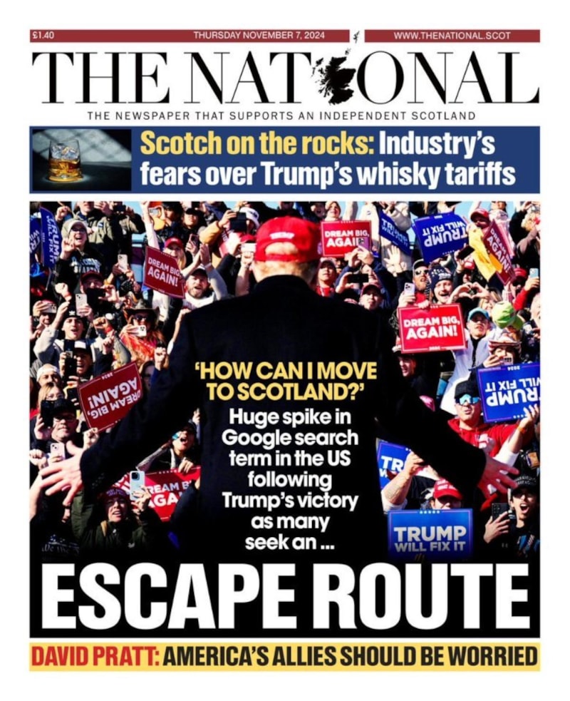 İskoçya'da yayın yapan The National gazetesi, bu kapsamda "Kaçış yolu" manşeti atarken, "Trump'ın zaferinin ardından, birçok kişinin 'kaçış yolu' araması nedeniyle ABD'de Google arama terimlerinde büyük bir artış yaşandı." ifadelerine yer verildi.