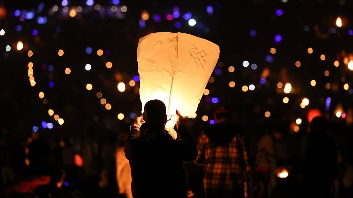 Festivale katılanlar, yaktıkları yüzlerce balonu gökyüzüne bıraktı.
