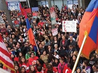 Little Armenia (Küçük Ermenistan) bölgesinden başlayarak Wilshire Bulvarı üzerindeki Türkiye’nin Los Angeles Başkonsolosluğu’na doğru yürüyen diaspora Ermenileri, polis barikatlarıyla koruma altına alınan Türk gruba hakaret ederek, ellerindeki pet şişeleri fırlattı.
