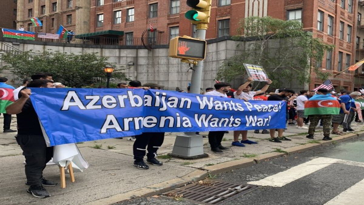 Sayıları daha az olan Ermenistan taraftarı ile bir süre karşılıklı slogan atan grup, daha sonra arabalar eşliğinde bir süre New York sokaklarında dolaşarak protestosuna devam etti.