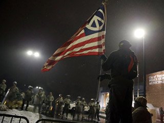ABD'de 18 yaşındaki silahsız siyahi genç Michael Brown'ı öldüren polisin yargılanmasına gerek görmeyen mahkeme kararından sonraki ikinci günde de ülkenin dört bir tarafında yeni protesto gösterileri düzenlenirken, olayların merkezi Ferguson'daki gerilim devam etti.