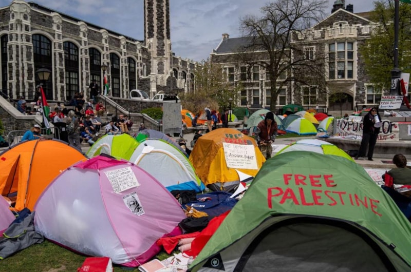 Columbia Üniversitesi'nde, Filistin destekçisi öğrenciler, nisan ortalarında okulun, İsrail'in Gazze'deki saldırılarını ve işgalini destekleyen şirketlere devam eden finansal yatırımlarını protesto amacıyla kampüsün bahçesinde oturma eylemi başlattı.