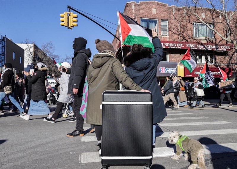Filistin destekçileri, Arap kökenli Amerikalı Müslüman nüfusun yoğun olduğu Queens ilçesine bağlı Astoria bölgesinde toplandı.