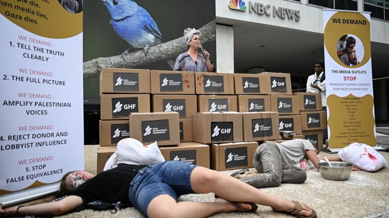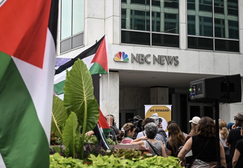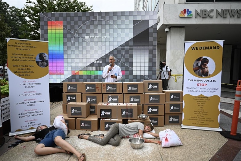 Filistin yanlısı aktivistler, ABD'nin Washington DC kentinde NBC ve FOX News genel merkezlerinin önünde toplanarak protesto gösterisi düzenledi.