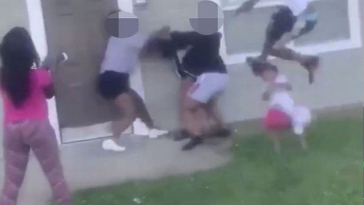 İki kadın, hamile kadına acımasızca saldırdı. O sırada başka bir saldırgan, kız çocuğunun kafasına tekmeyle vurdu.