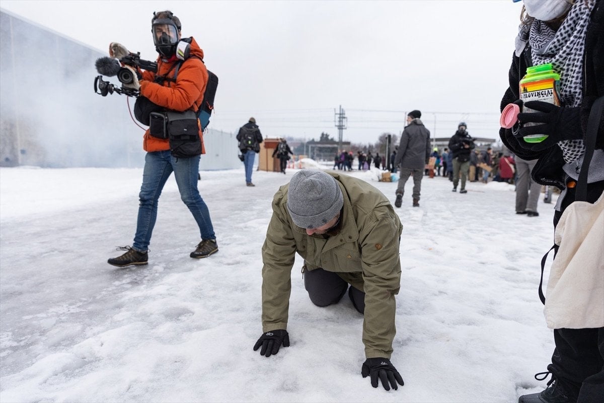 Düzenlenen protesto sırasında, federal ajanlara ait araçların tesisten ayrılmasını engellemeye çalışan göstericiler ile kolluk kuvvetleri arasında arbede yaşandı.