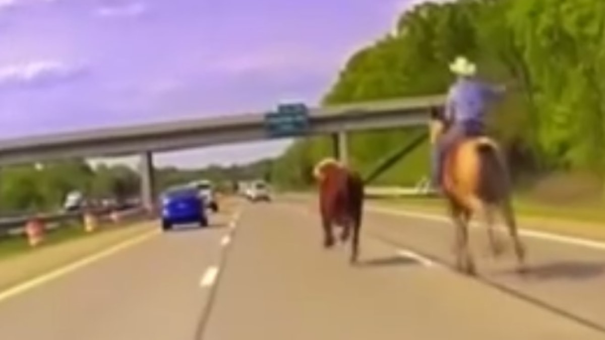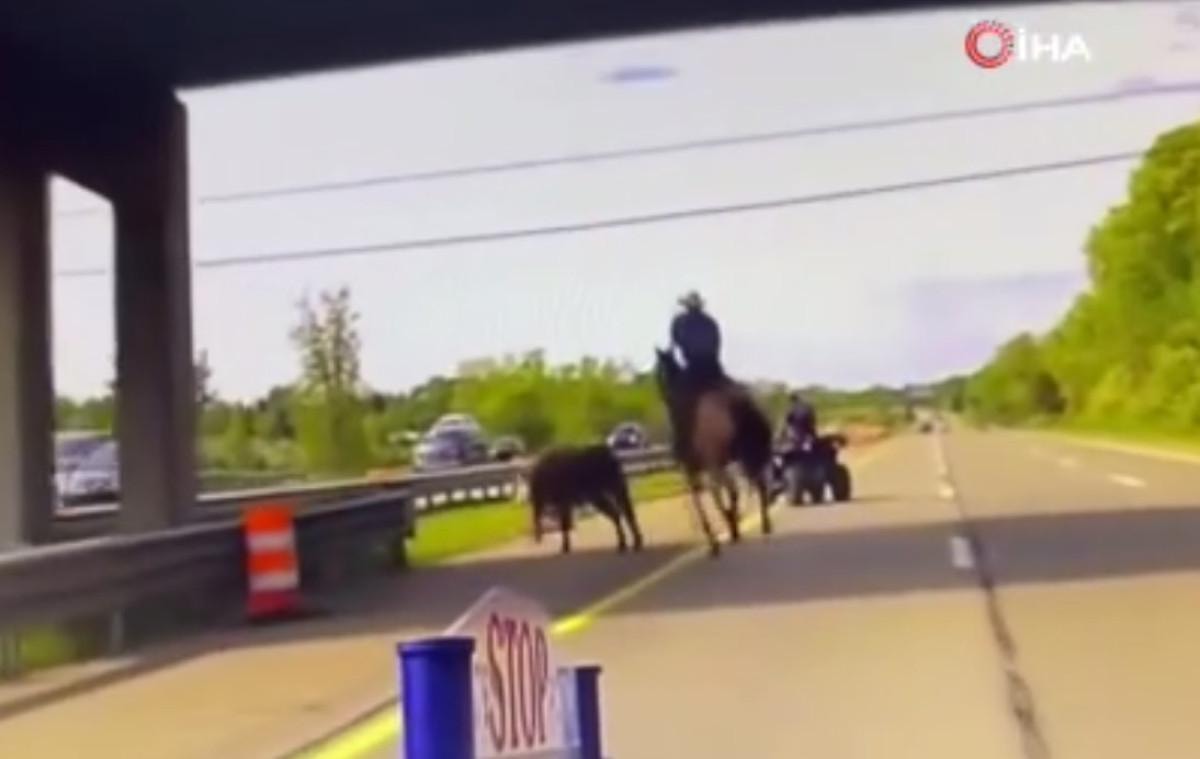 İneği yakalamak için peşinden gelen kovboy ile inek arasında eyaletler arası yolda kovalamaca yaşandı.