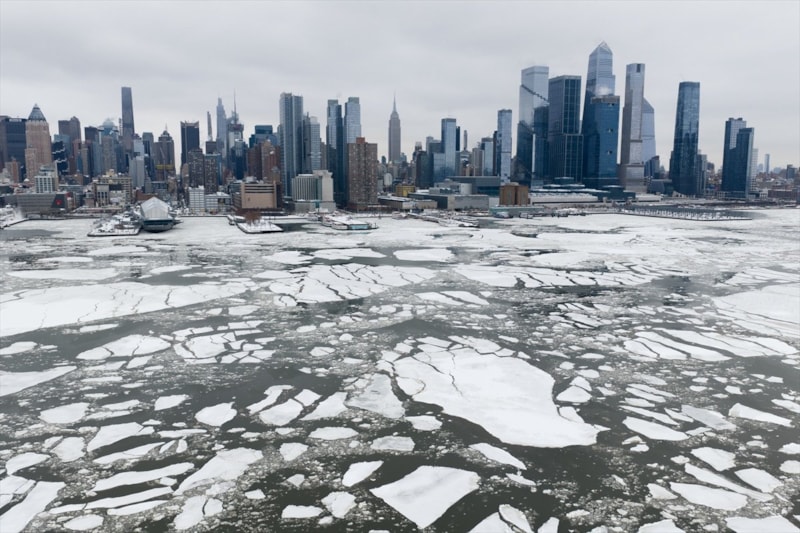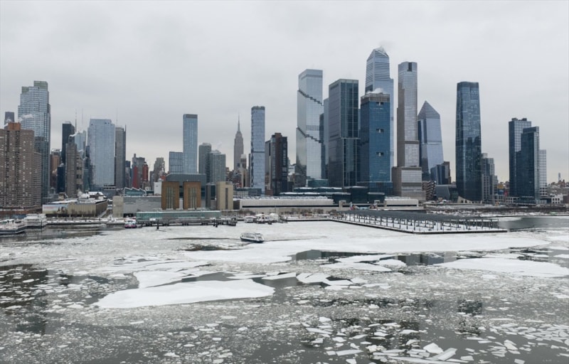 Kentte etkili olan yoğun kar yağışı ve dondurucu soğuklar sonrası Hudson Nehri’nin bazı bölümleri dondu.