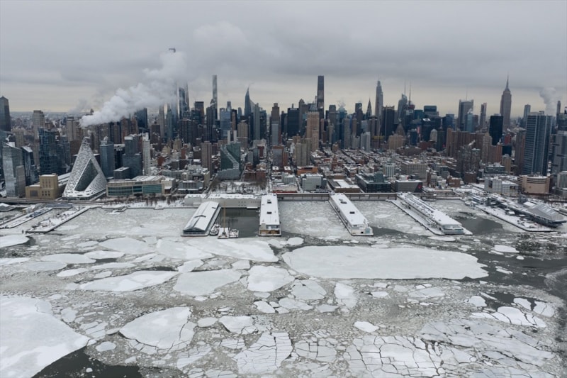 New York kentinde etkili olan yoğun kar yağışı ve dondurucu soğuklar sonrası Hudson Nehri’nin bazı bölümleri buz tutarken oluşan görüntüler drone ile havadan görüntülendi.