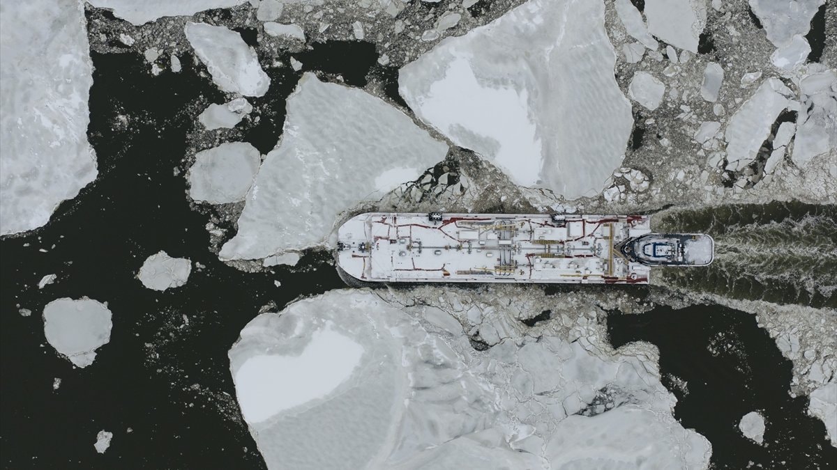 Nehir üzerinde buz kütleleri oluşurken gemi ve tekneler ilerlemekte zorlandı.