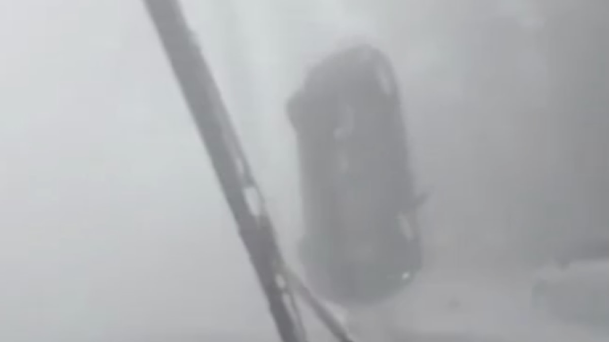 Güney Carolina eyaletine bağlı Goose Creek şehrindeki bir otoyolda ilerleyen seyir halindeki araç, kasırganın şiddetiyle takla attı.
