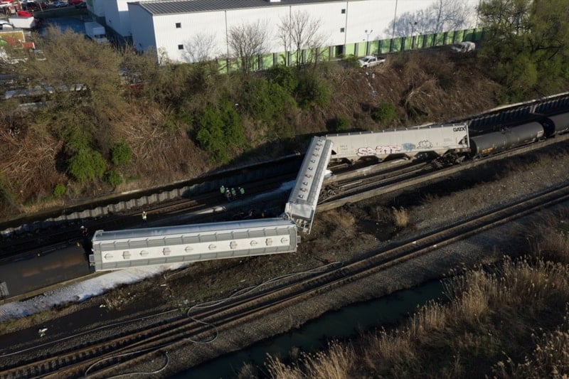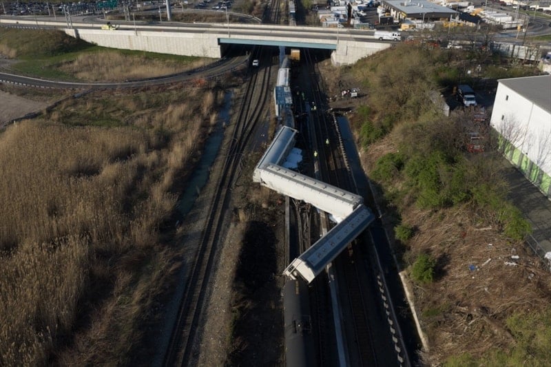 ABD'nin New Jersey eyaletindeki North Bergen'de meydana gelen tren kazasında yük treninin 13 vagonu raydan çıktı.
