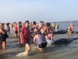ABD’nin Georgia eyaletindeki Saint Simons Adası’nda, yaklaşık 50 pilot balina kıyıya vurdu.