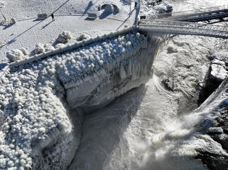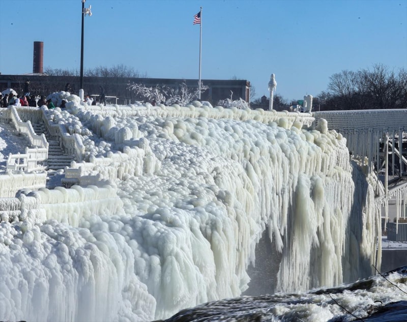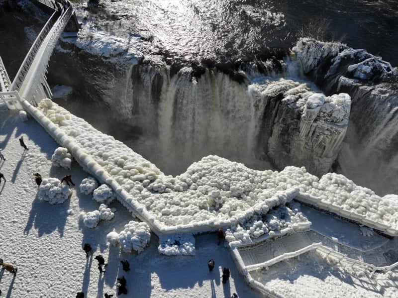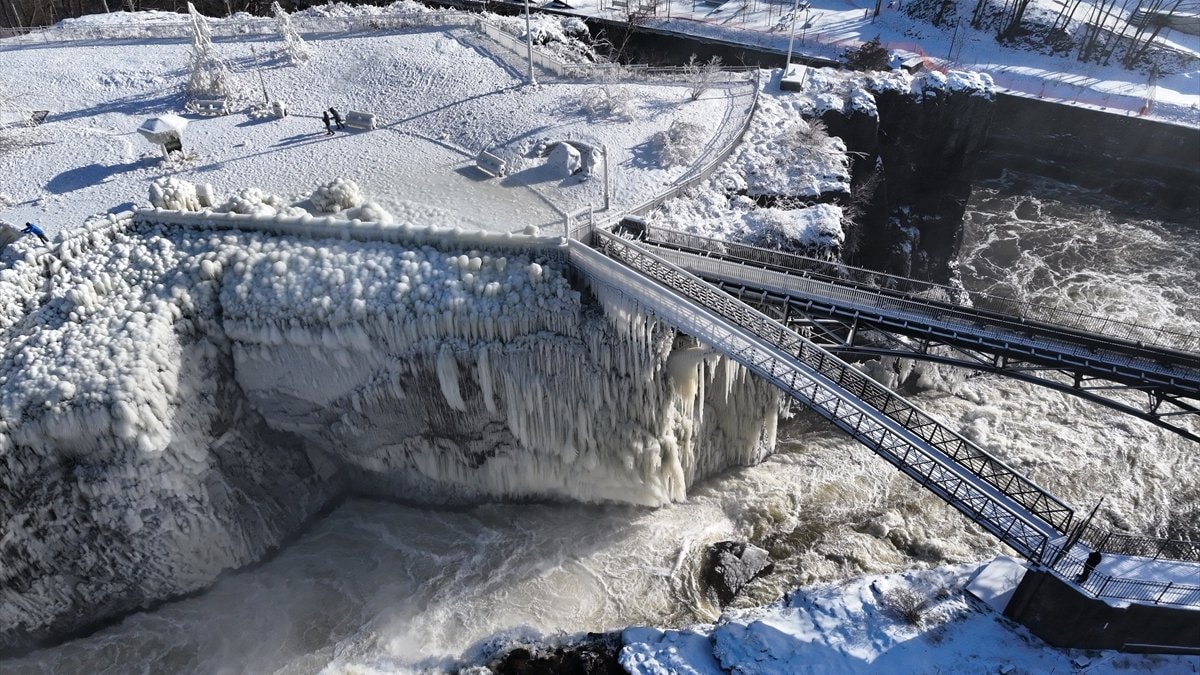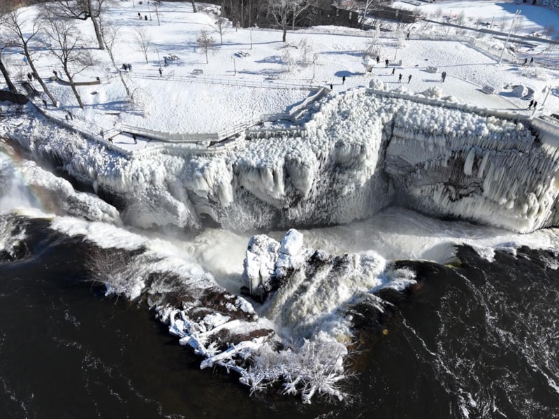 New Jersey eyaletinde bulunan Paterson Şelaleleri, aşırı soğuk havadan neredeyse dondu.