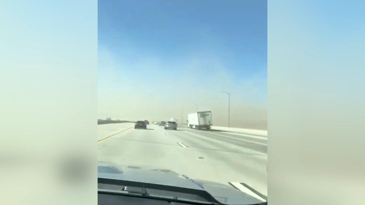 ABD'nin Los Angeles kentinde meydana gelen fırtınada esen şiddetli rüzgar trafikte seyir halindeki tır devirdi.
