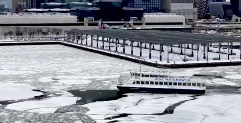 Eyalette bulunan Hudson Nehri adeta buz tuttu.