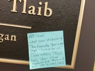 ABD'nin Michigan eyaleti vekili, Filistin asıllı Demokrat Raşida Tlaib, İsrail yanlısı bir kişi tarafından kapısına yapıştırılan nefret notunu ifşa ederek tepki gösterdi.