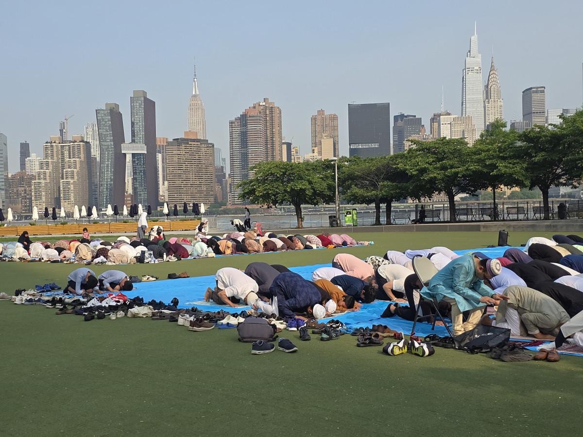Müslümanlar, sıcak hava nedeniyle bayram namazını Hunter's Point South Park ve Sunnyside Park'ta eda etti.