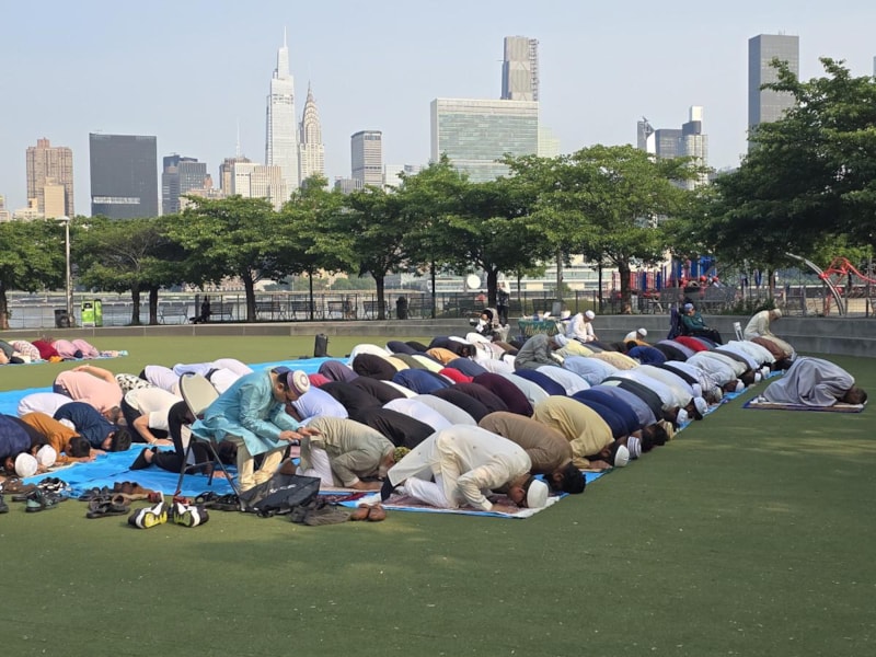 ABD'nin New York kentinde farklı milletlerden Müslümanlar, bayram namazı için saf tuttu.