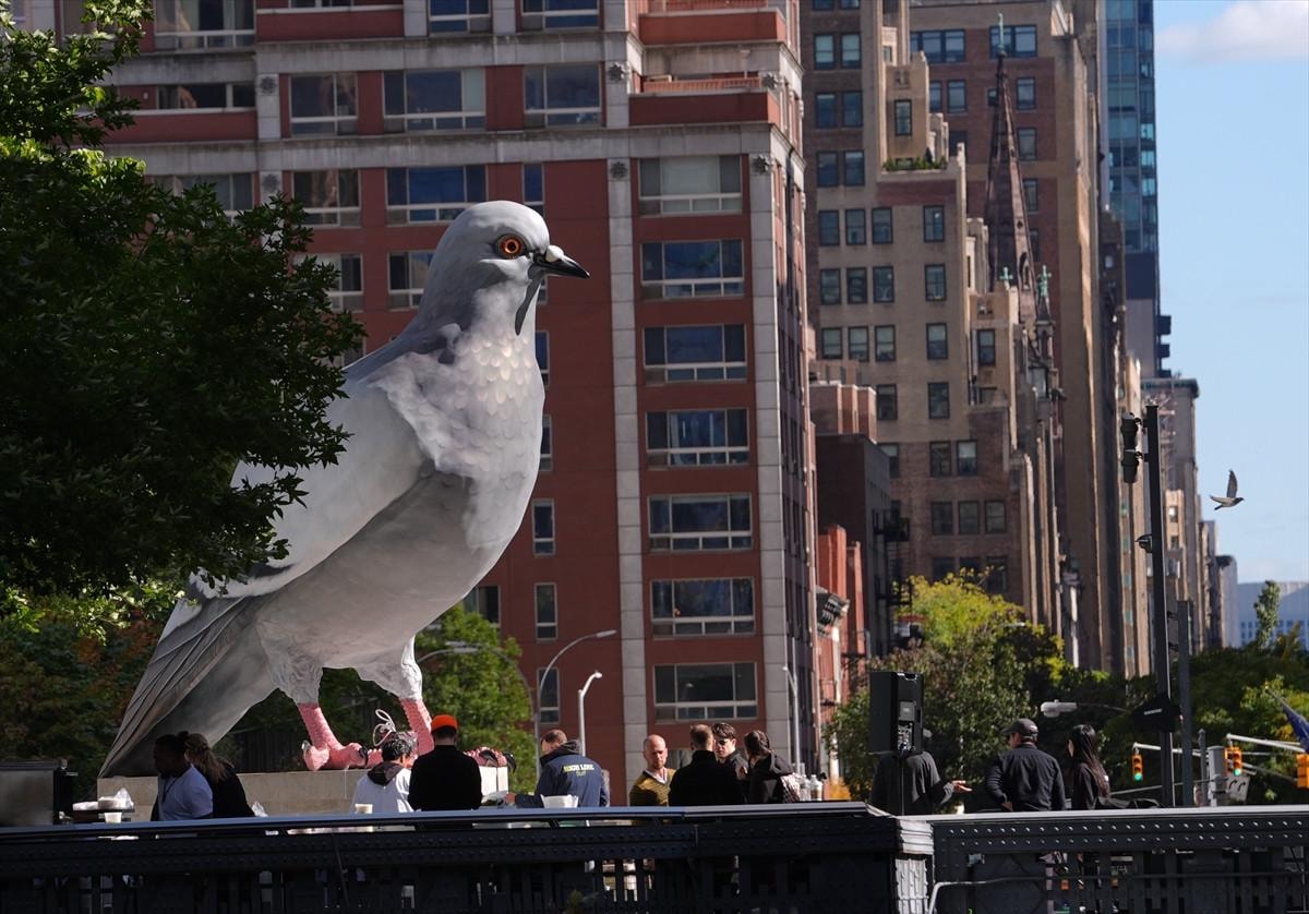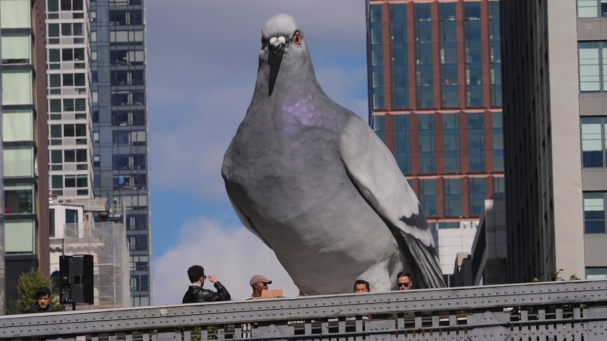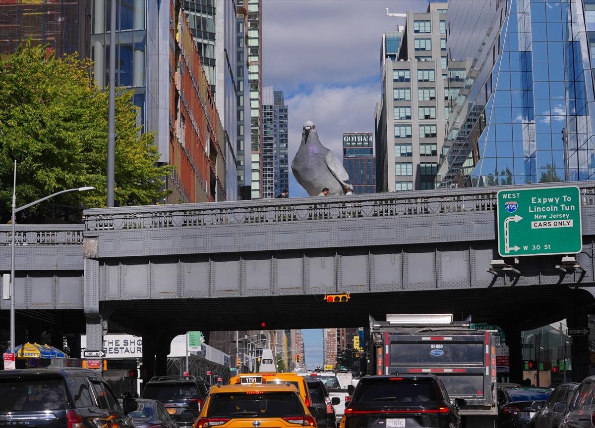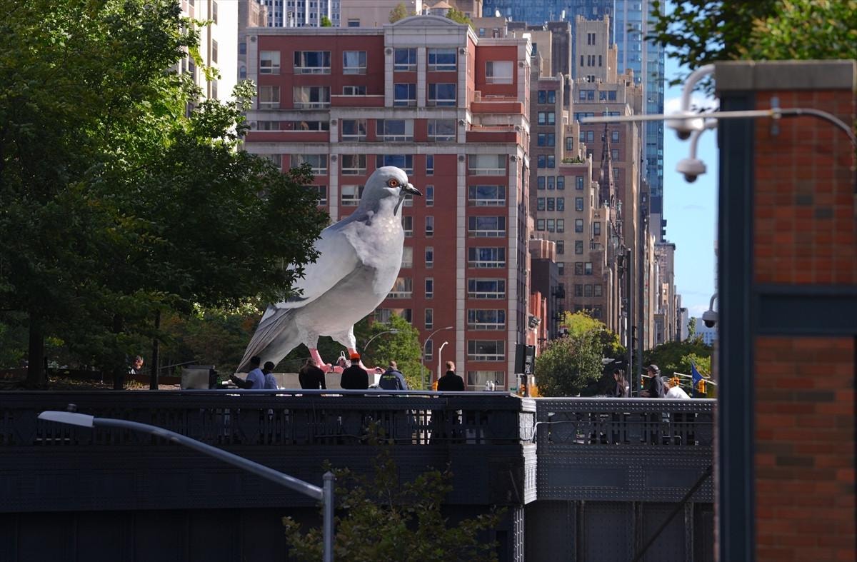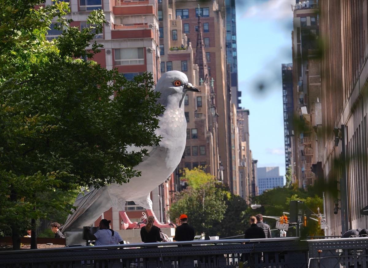 Kolombiya asıllı sanatçı Ivan Argote, kendi elleriyle alüminyumdan yaptığı güvercin heykelini Manhattan’da 10. Cadde ile 30. Sokak'ın kesiştiği noktaya yerleştirdi.