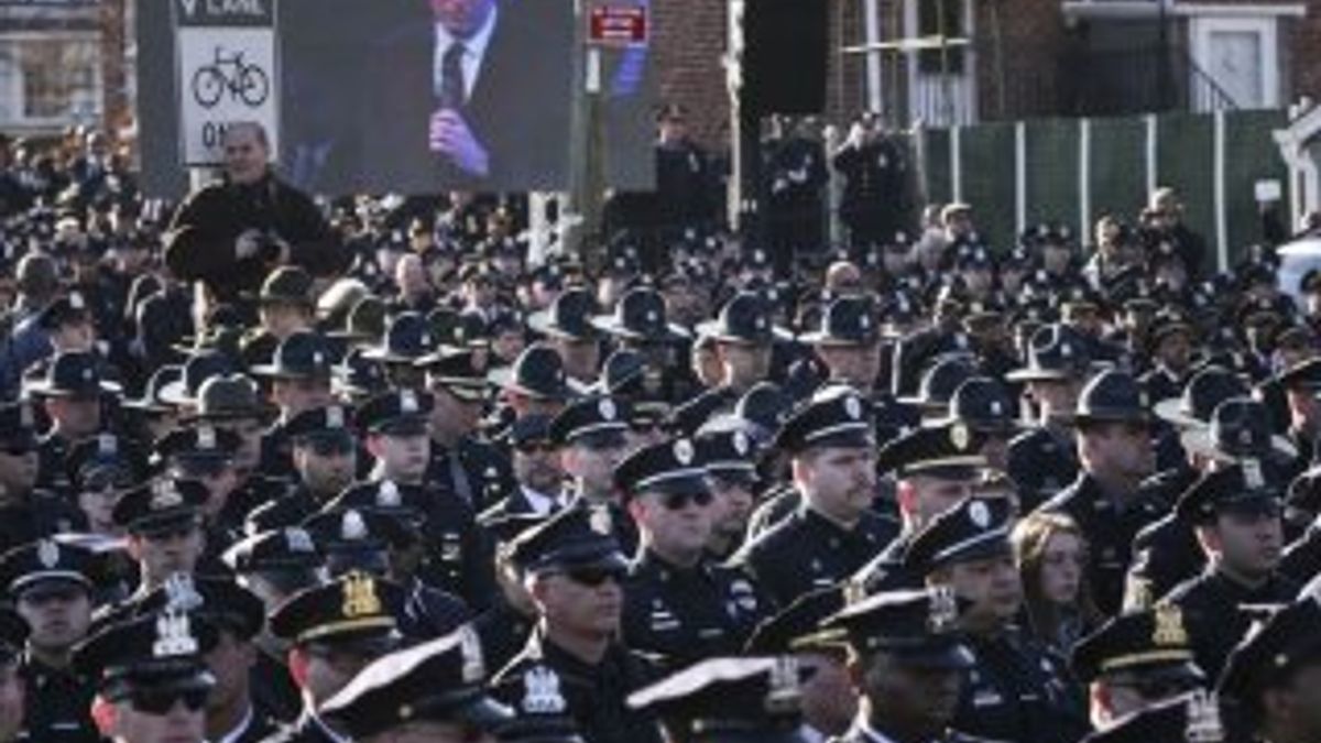 Kilise içinde konuşma yaptığı sırada alkışlanan Belediye Başkanı De Blasio, siyahilerin ölümüne neden olan polis şiddetine karşı gösterileri desteklediği gerekçesiyle, cenazeye katılan dışarıdaki kalabalığın da protestosuyla karşılaştı. New York'taki polis sendikası yetkilileri daha önce yaptığı açıklamada ise De Blasio'nun polis cenazelerine katılmamasını istediklerini belirtirken, belediye başkanına karşı ağır eleştirilerde bulunmuştu.