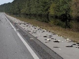 Kuzey Karolina'da bir otoban üzerinde yüzlerce ölü balık bulundu.