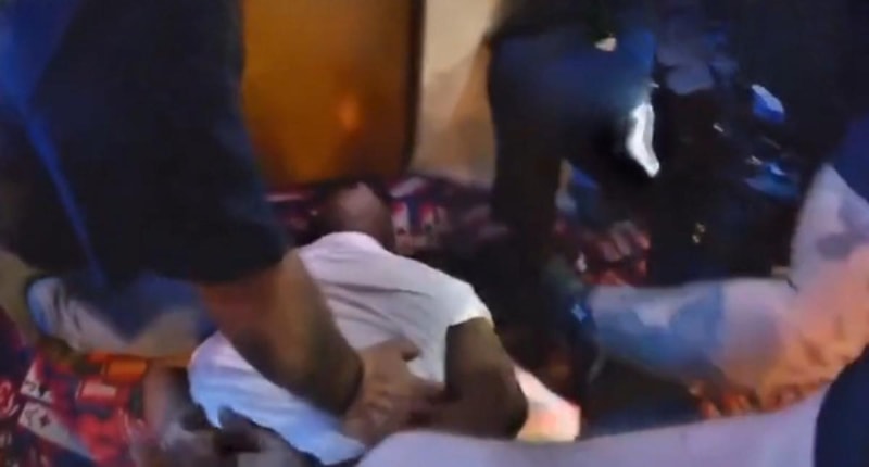 Görüntülerde, polisin bir kafeteryada gözaltına aldığı ve daha sonra yere yatırıp ters kelepçe taktığı siyahi Amerikalı Tyson'ın defalarca "Beni öldürmeye çalışıyorlar" şeklinde bağırdığı duyuluyor.