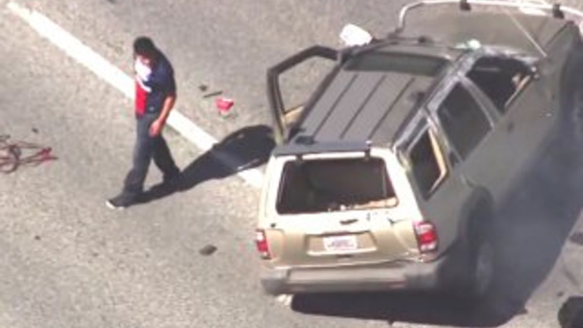 Los Altos Hills bölgesi civarında sürücüsünün kontrolünden çıkan araç, bariyerlere çarparak takla attı. Olaydan yara almadan kurtulan ve aracından kendi çabasıyla çıktıktan sonra kazanın şokuyla etrafına bakınan şüpheli şahıs, polislere direnmedi ve otoyolun ortasında teslim oldu.