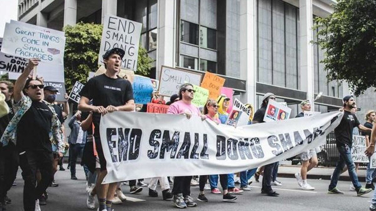 Şehir merkezi boyunca yürüyen protestocular, küçük penislilere destek oldu.
