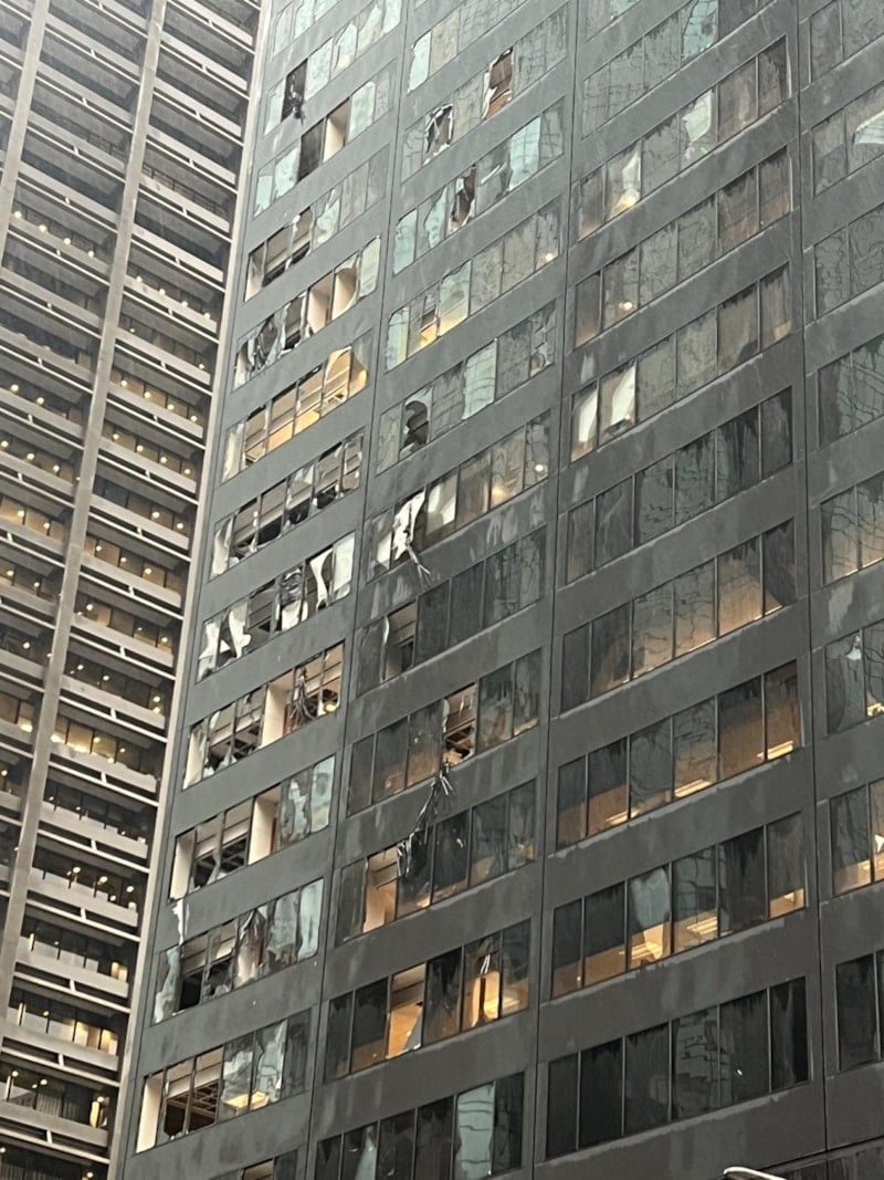İtfaiye yetkilileri, kent merkezindeki bazı gökdelenlerin şiddetli fırtına sebebiyle camlarının patladığını açıkladı.