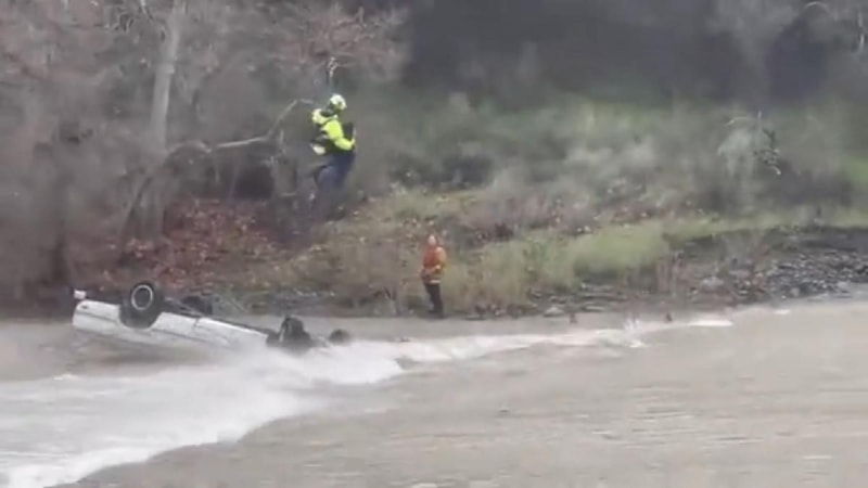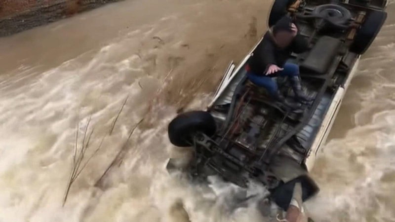 Kaliforniya’nın Livermore ilçesinde de bir kadın sürücü, aracıyla dere yolunu geçerken şiddetli yağışların fırtınaya dönüşmesinden etkilendi.
