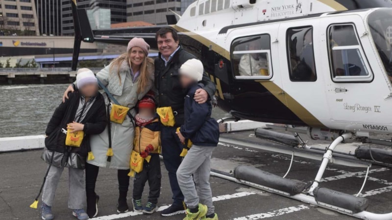 Bir pilot ile beraber New York üzerinde gezinmeye başlanan aile, helikopterin kısa süre sonra Hudson Nehri'ne düşmesiyle hayatını kaybetti.