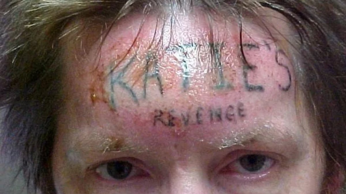 Harris onu içeri kilitledi ve alnına zorla 'Katie'in intikamı' dövmesini yaptı.