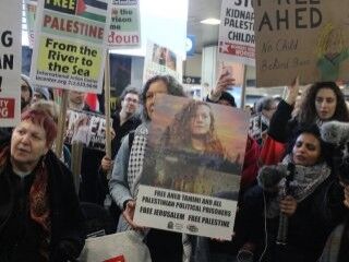 "Ahed Temimi serbest bırakılsın", "ABD İsrail'e yardımları kes" ve "Kudüs Filistin'in başkentidir" pankartları taşıyan göstericiler, ABD ve İsrail yönetimleri aleyhine slogan attı.