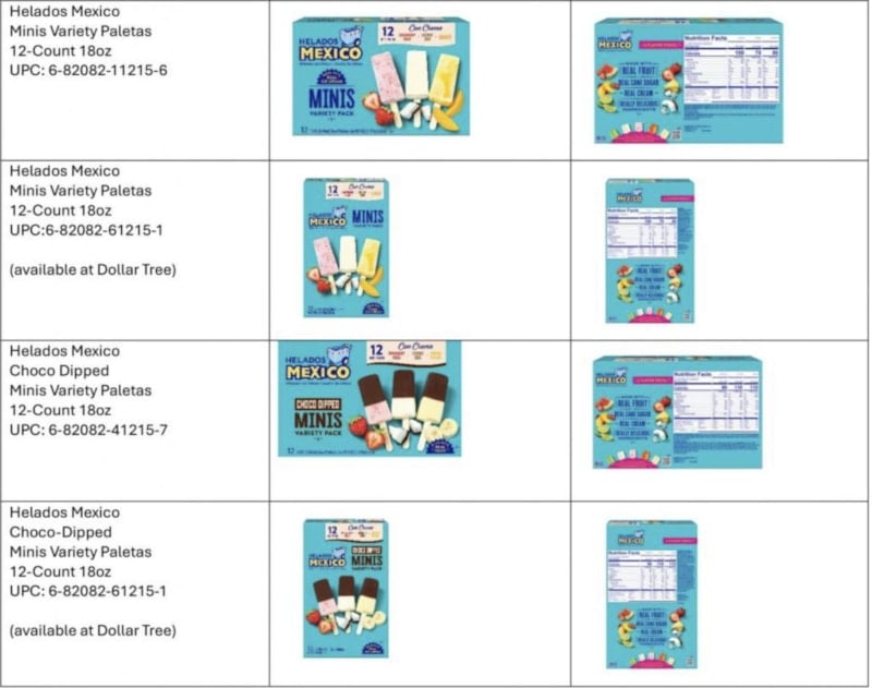 Şirket, Helados Mexico ve La Michoacana markalı bazı dondurmaların içerik listesinde "süt" ifadesinin eksik olduğunu ve bu durumun alerjik bireyler için hayati risk taşıdığını duyurdu.