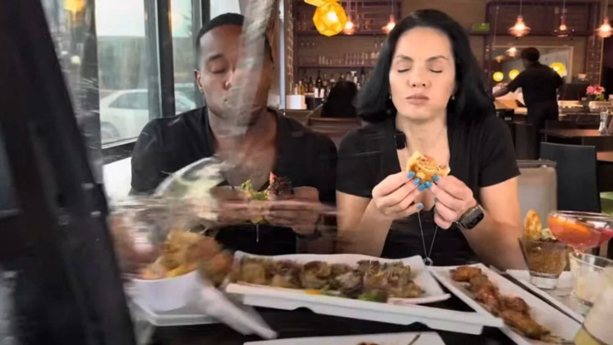 Yemek tadım içerikleri çeken Patrick Blackwood ve Nina Santiago çifti, çekim yaptıkları sırada bir araç camdan içeri girerek çiftin masasına çarptı.