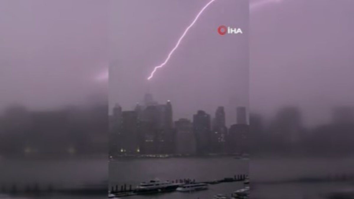 Fırtınanın karaya çıkması ile New York kentinde bulunan One World Trade Center’a yıldırım düştü.