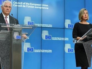 Federica Mogherini ve ABD Dışişleri Bakanı Rex Tillerson, ikili görüşmenin ardından Brüksel'deki AB Konseyi binasında basın toplantısı düzenledi.