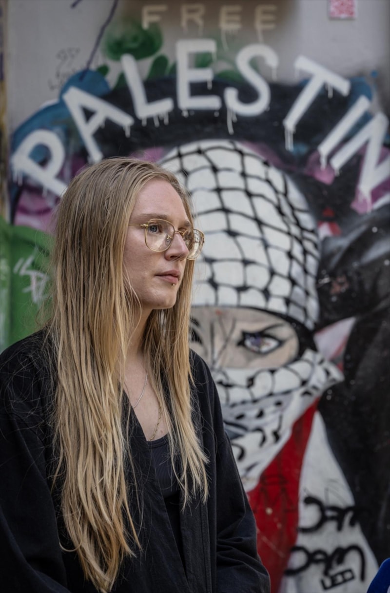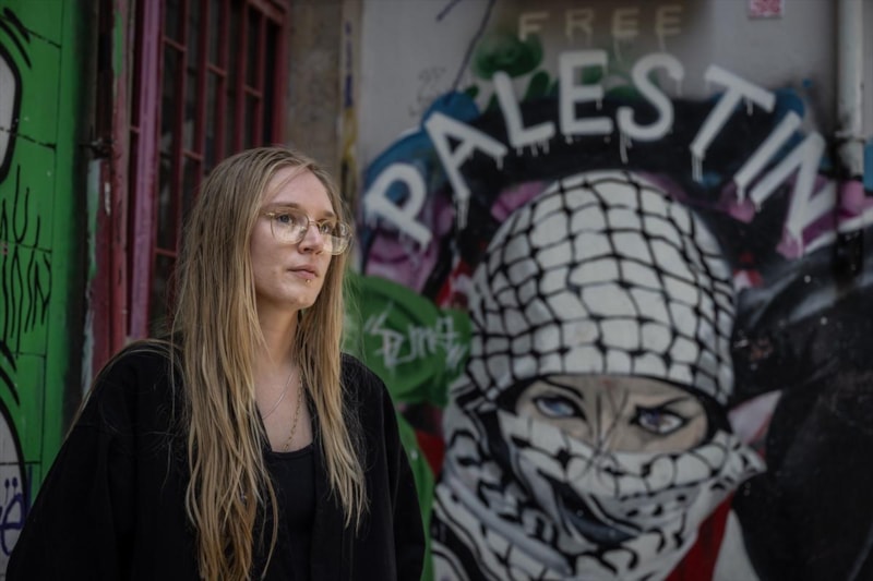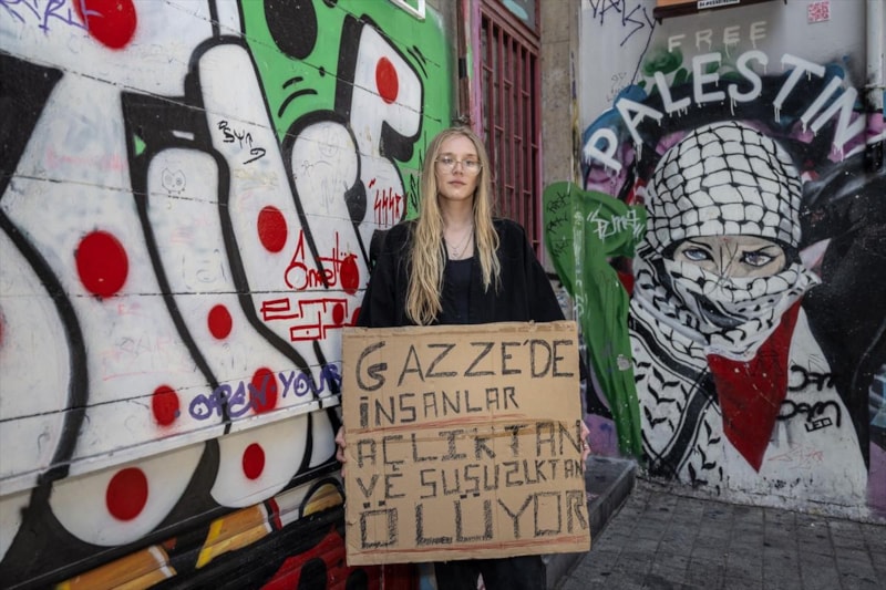 Yaklaşık 3 ay önce Türkiye’ye gelen 28 yaşındaki ABD’li müzisyen, seyyah ve aktivist Cassandra McLaughlin, İsrail’in Gazze’ye yönelik saldırıları ve bölgede yaşanan kıtlık karşısında sessiz kalamayacağını belirterek Kadıköy’de bireysel bir eylem başlattı.