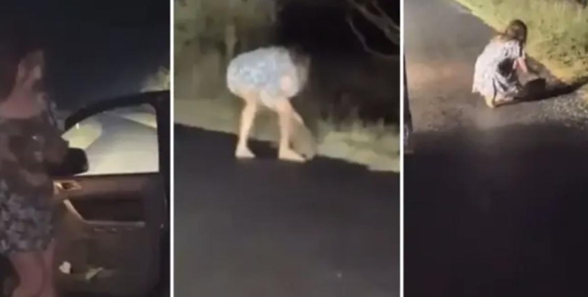 Jones, araçtan inerek yavru bir vombatı annesinden ayırdı ve bu anları video kaydına alarak sosyal medya hesabı üzerinden paylaştı.