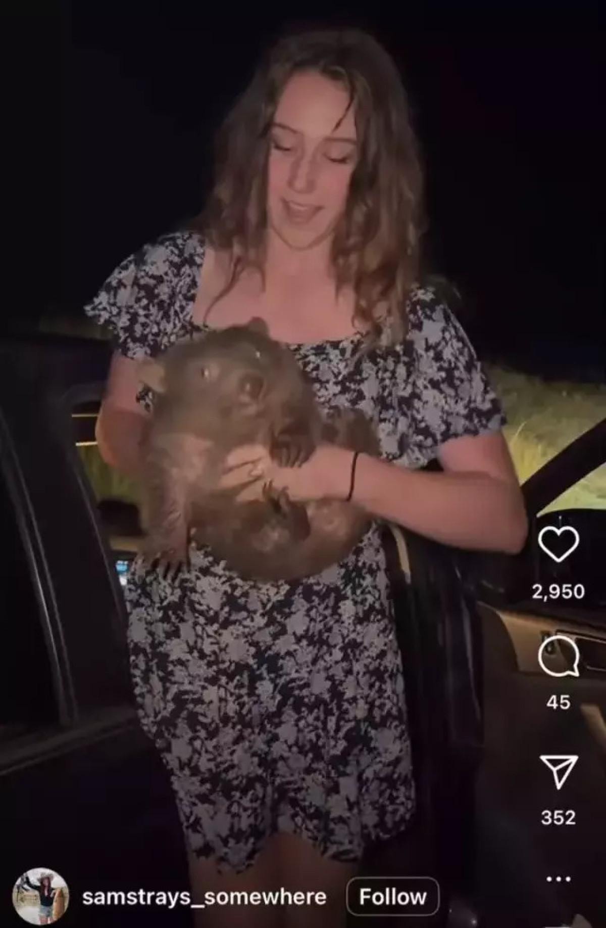 Tatil yapmak üzere Avusturalya'ya giden Sam Jones isimli ABD'li fenomen, akşam saatlerinde arkadaşlarıyla araba yolculuğu yaparken yol kenarında ülkeye özgü bir hayvan olan vombatları gördü.