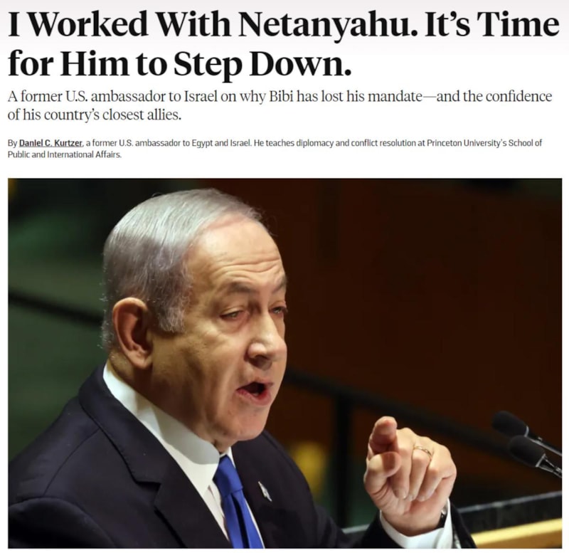 Foreign Policy dergisi için "Netanyahu'yla çalıştım. İstifa etme vakti geldi" başlıklı bir makale kaleme alan ABD'nine eski İsrail Büyükelçisi Daniel C. Kurtzer, dikkat çeken ifadeler kullandı.