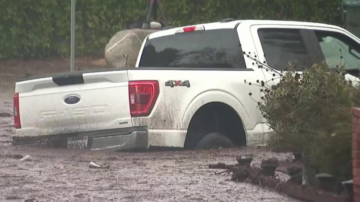 Orange County'de bir araç, sel suyuyla dereye sürüklendi.