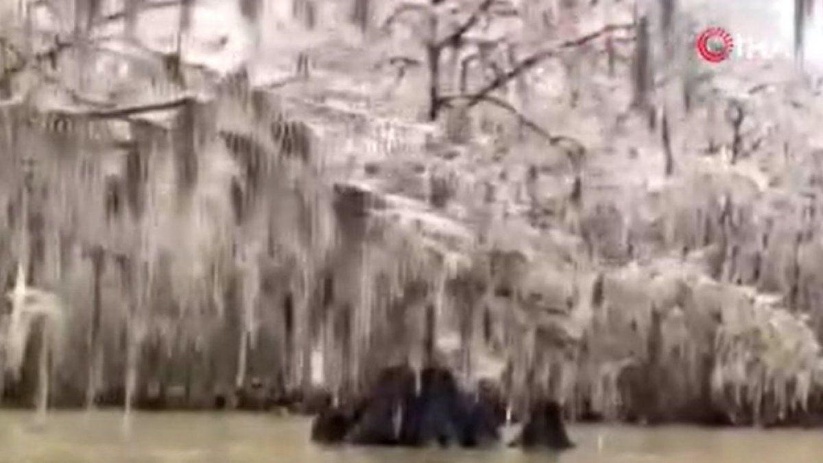 ABD'nin Louisiana eyaletinde ağaçlar dondu VİDEO