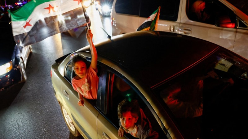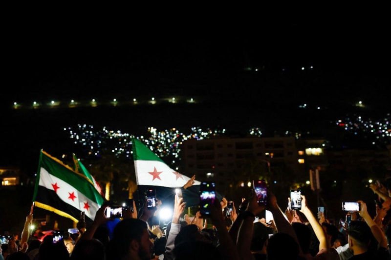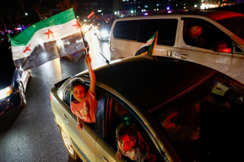 Başkentteki Emevi Meydanı'nda bir araya gelen Suriyeliler, konvoylar yaparak ve Suriye bayrağı sallayarak kutlama yaptı.