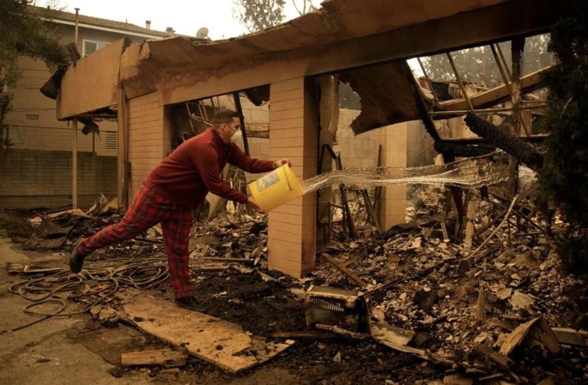 Bölgeden gelen bir fotoğraf karesinde evindeki yangını kovayla söndüren bir ABD'li acı tabloyu da tüm dünyanın önüne serdi.