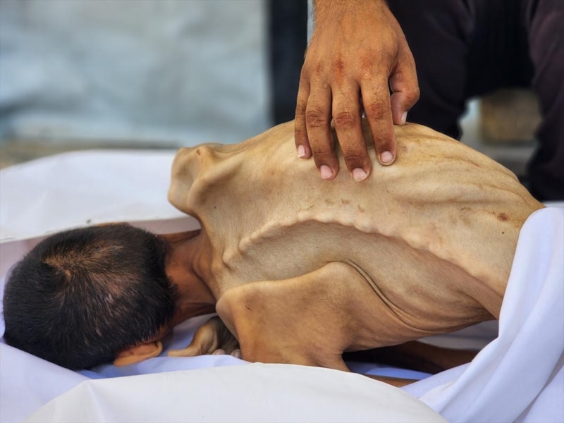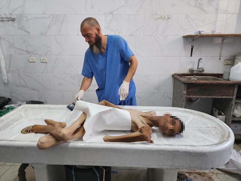 Gazze'nin güneyindeki Han Yunus kentinde bulunan Nasır Hastanesi'nde açlıktan can veren Adil'in bir deri bir kemik kalan vücudu son derece küçülmüş, karnı çökmüş, yüzü ise adeta dünya ile bağlantısı kalmamış "etten kemikten bir heykeli" andırıyordu.