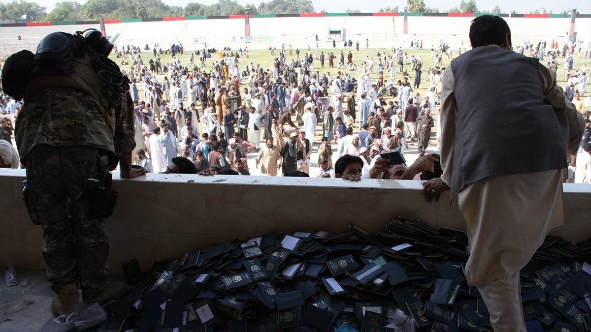 Afganistan'ın doğusunda yer alan Nangargar vilayetindeki vatandaşlar, Pakistan vizesi alabilmek için bir alanda toplandı.