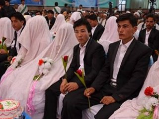 Afganistan'da düğünlerde yapılan ciddi masraflardan şikayetini dile getiren dernek üyesi Hasan Nezim, "Ülkemizde düğün masrafları çok fazla olduğu için yüzlerce nişanlı çift düğün yapamıyor, biz bu soruna son vermek için toplu düğünleri seçtik, bugün de 100 çiftimizin düğününü yaptık" dedi.